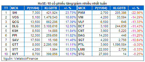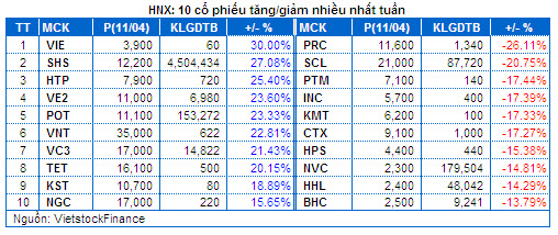 I. THỊ TRƯỜNG CHỨNG KHOÁN VIỆT NAM TUẦN 07.04 – 11.04.2014 Giao dịch: Tâm lý thận trọng vẫn chưa dừng. Cả hai chỉ số thị trường đã lấy lại đà tăng trong tuần này. Cụ thể, VN-Index tăng 1.27% lên 600.57 điểm, trong khi HNX-Index tăng 0.84% đạt 87.49 điểm, còn VS 100 tăng nhẹ 0.02% giữ ở mức 100.08 điểm và VN30 giảm 0.02% xuống 665.85 điểm. Tuần này, nhóm VS-Mid Cap và nhóm VS-Small Cap tăng điểm với 0.29% và 0.04% tương ứng, trong khi nhóm VS-Micro Cap và VS-Large Cap giảm lần lượt 1.07% và 0.53%. Tâm lý thận trọng của giới đầu tư vẫn chưa dừng lại trong tuần này, qua việc thanh khoản tiếp tục sụt giảm. Trên sàn HOSE, khối lượng khớp lệnh bình quân phiên ở mức 108 triệu đơn vị, giảm 13% so với mức khớp lệnh bình quân phiên tuần trước là gần 123 triệu đơn vị. Trên sàn HNX, khối lượng khớp lệnh bình quân phiên ở mức gần 67 triệu đơn vị, giảm 15% so với mức khớp lệnh bình quân phiên tuần trước là 80 triệu đơn vị Thị trường tiếp tục tăng điểm trong những phiên giao dịch đầu tuần với sự dẫn dắt của các cổ phiếu trụ cột như GAS, VNM , MSN, BVH ... Bên cạnh đó giao dịch hưng phấn ở nhóm cổ phiếu Chứng khoán cũng góp phần không nhỏ vào đà tăng của thị trường. Tuy nhiên điểm đáng chú ý đó là đà tăng của thị trường đã không còn lan tảo rộng như những đợt tăng điểm trước đây mà có sự phân hóa khá lớn. Hoạt động chốt lời đã gia tăng khá mạnh trong nhưng phiên giao dịch cuối tuần khi thị trường tiệm cần vùng đỉnh cũ 610 điểm. Điều này đã khiến cho đà tăng của thị trường bị chặn đứng. Bên cạnh áp lực chốt lời thì giao dịch thị trường cũng chịu áp lực về tâm lý không nhỏ trước động thái bán ròng mạnh của khối ngoại. GAS, MSN và nhóm cổ phiếu chứng khoán tiếp tục thu hút dòng tiền trong những phiên giao dịch này. Đây được xem là lực đỡ quan trọng giúp xoa dịu áp lực bán ra của thị trường và giúp chỉ số VN-Index duy trì trên mốc 600 điểm. Nhà đầu tư nước ngoài: Bán ròng gần 503 tỷ đồng. Khối ngoại quay đầu bán ròng mạnh trong tuần qua. Tuy vậy lực bán chỉ tập trung mạnh ở DPM và VIC do đó mức độ ảnh hưởng lên các chỉ số thị trường là không đáng kể. Tuy vậy, việc khối ngoại trở lại bán ròng cũng khiến tâm lý của giới đầu tư trở nên thận trọng hơn trong tuần qua. Trên sàn HOSE, khối ngoại bán ròng tổng cộng 503 tỷ đồng, tập trung mạnh nhất ở DPM (425.3 tỷ đồng); tiếp theo là ở VIC (151.3 tỷ đồng), HAG (91.2 tỷ), SSI (25.2 tỷ đồng) và CII (23.8 tỷ). Giao dịch mua ròng mạnh nhất diễn ra ở GAS với 34.9 tỷ đồng, DIG (21.3 tỷ đồng), DXG (20.3 tỷ đồng). Trên sàn HNX, khối ngoại mua ròng nhẹ chỉ với 0.7 tỷ đồng, tập trung chủ yếu ở VCG (7.3 tỷ đồng), VCS (4.8 tỷ đồng), KLS (2.5 tỷ). Trong khi đó, họ bán ròng mạnh nhất ở PVS với 20.4 tỷ đồng và PGS với 4.2 tỷ đồng. Khối tự doanh CTCK: Bán ròng nhẹ 7.4 tỷ đồng. Tính đến phiên giao dịch Thứ Năm (10/04), khối tự doanh các CTCK đã bán ròng với hơn 7.4 tỷ đồng, tuy nhiên họ vẫn mua ròng về mặt khối lượng với gần 918 nghìn đơn vị. Đáng chú ý đó là giao dịch của khối tự doanh trong tuần qua chủ yếu tập trung ở nhóm cổ phiếu có thị giá cao. Theo đó, giá trị trung bình lệnh mua và bán trong tuần qua đạt lần lượt 31,300 – 48,000 đồng/cp. Cổ phiếu đáng chú ý: Số ngành tăng và giảm điểm cân bằng trong tuần qua với 12/12 ngành. Chứng khoán dẫn đầu đà tăng với 4.96%, tiếp theo là DV Lưu trú – Giải trí tăng 3.16%, Thương mại tăng 2.58%. Ở chiều ngược lại, Sản xuất Vật liệu xây dựng giảm mạnh nhất với 4.46% tiếp theo là CNTT-Truyền thông giảm 4% và Sản xuất Cơ khí giảm 3.85% Các nhóm cổ phiếu nóng cũng có tuần đối lập. Trong khi Ngân hàng và Bất động sản giảm lần lượt 0.2% và 1.77% thì Xây dựng và Khai khoáng tăng lần lượt 0.97% và 0.80%. Cổ phiếu tăng điểm mạnh đáng chú ý trên HOSE là SHI tăng 23.7%, VOS tăng 18.6%, QCG tăng 17.3%, DLG tăng 12.5%. Trên sàn HNX, cổ phiếu tăng điểm đáng chú ý là SHS tăng 19.6%. SHI tăng 19.6%. SHI tăng mạnh trong tuần qua có thể liên quan đến việc SHI sẽ trình ĐHCĐ thường niên năm 2014 về phương án phát hành 10 triệu cổ phiếu với giá dưới mệnh giá để tái cơ cấu nợ, giảm nợ vay ngắn hạn. Điều này có thể đã thu hút dòng tiền đầu cơ chảy vào cổ phiếu này. VOS tăng 18.6%. VOS tăng mạnh trong tuần qua nhiều khả năng xuất phát từ dòng tiền đầu cơ đổ vào cổ phiếu này nhằm đón đầu thông tin tích cực. Theo đó VOS đã được giao dịch trở lại dưới dạng bị kiểm soát. QCG tăng 17.3% và DLG tăng 12.5%. Hai cổ phiếu này liên tuc tăng điểm khi không có thông tin mới liên quan đến hoạt động kinh doanh của những cổ phiếu này. Nhiều khả năng dòng tiền đầu cơ tiếp tục tập trung vào một số cổ phiếu Bất động sản trong tuần qua. SHS tăng 20.7%. SHS tăng mạnh trong tuần qua có do hưởng lợi từ dòng tiền đầu cơ tập trung vào nh