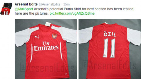 Tài khoản mang tên @ArsenalEdits đã đăng lên trang xã hội Twitter những hình ảnh được cho là trang phục thi đấu chính mùa tới của Arsenal và sau lưng là số áo 11 của tiền vệ Mesut Oezil.